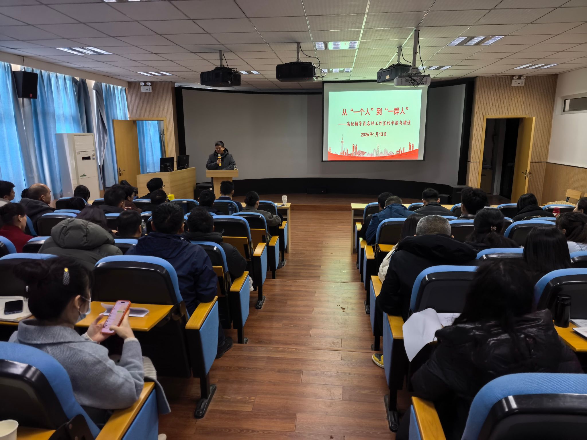 为深化辅导员队伍专业化建设,推动辅导员名师工作室高质量发展,1月13日上午,学校第二十二期辅导员培训班邀请安徽农业大学马克思主义学院党委副书记、副教授刘灿,以“从‘一个人’到‘一群人’——高校辅导员名师工作室的申报与建设”为主题开展专题讲座,全体辅导员齐聚逸夫楼A501室参与学习。