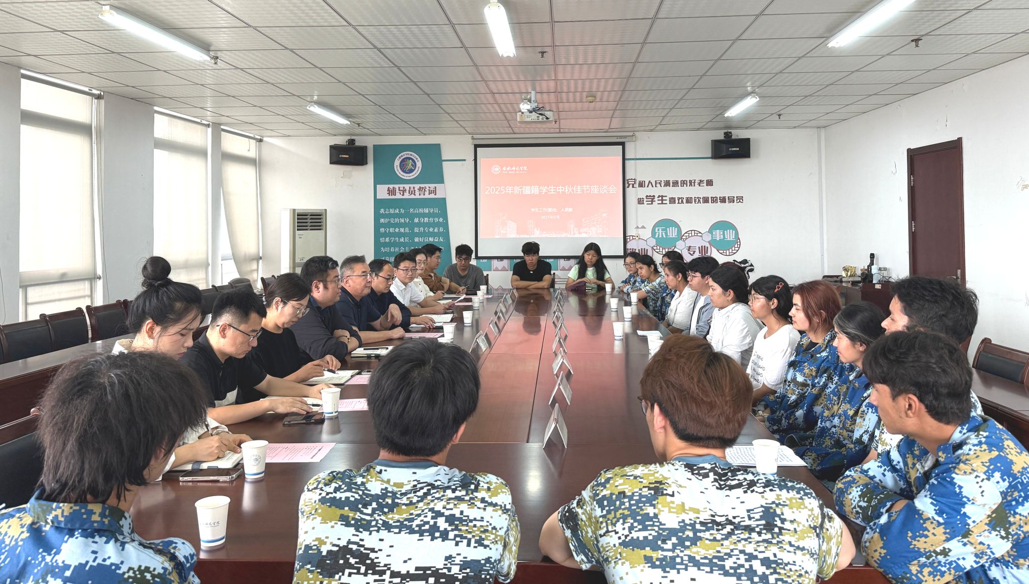 方红军向全体新疆籍同学致以节日的诚挚问候和美好祝福。他表示,省教育厅和学院始终高度关注每一位学生的成长与发展,尤其关心远离家乡的新疆籍同学们在校的学习与生活情况。中秋是团圆的节日,希望这次座谈会能让大家感受到学校大家庭的温暖,缓解思乡之情。他鼓励同学们要多关注党和国家大事,铸牢中华民族共同体意识,珍惜在校时光,努力学习,积极融入校园生活,与各族同学相互学习、相互帮助、共同进步,像石榴籽一样紧紧抱在一起。