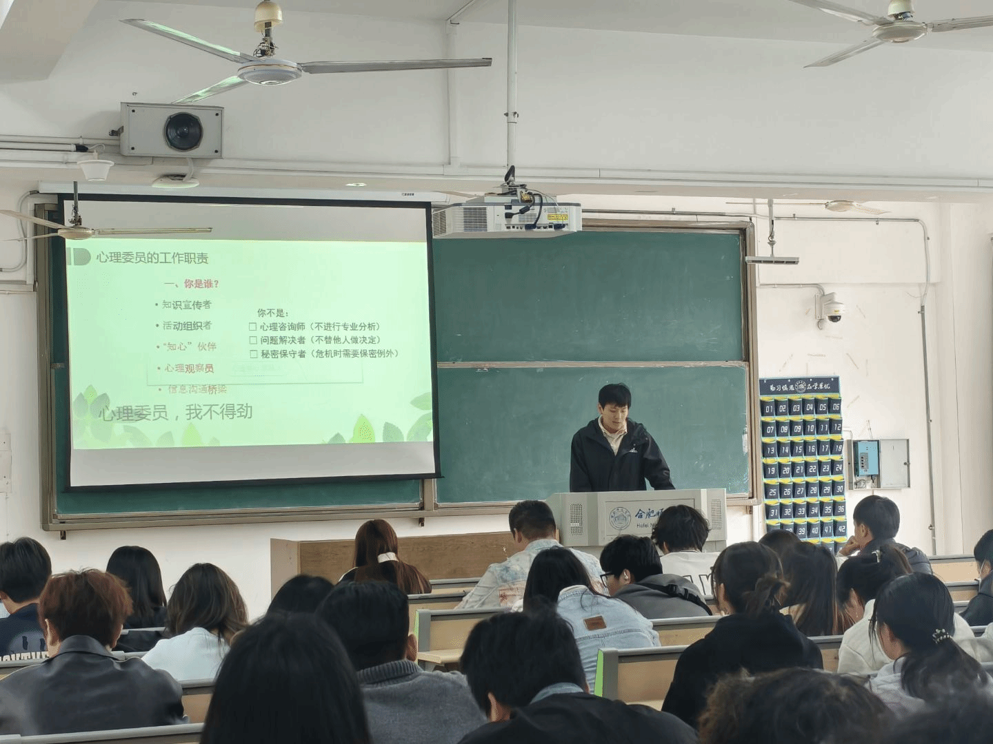 第一专题培训《心理委员的工作职责边界及信任关系建立》由心理健康教育中心黄湘涛老师主讲。黄湘涛围绕心理委员核心定位,明确工作职责和实操方法,重点讲解了日常观察、主动关怀,倾听共情、引导专业求助等关键内容,指导大家与同学建立真诚稳固的关系,着重强调了心理委员的保密边界及保密例外原则,以60分的观察者的定位做好本职工作。