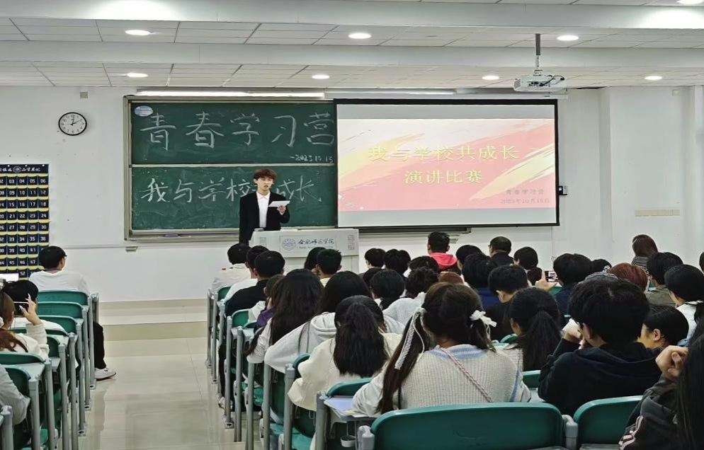 为深入学习贯彻习近平新时代中国特色社会主义思想、全面落实立德树人根本任务,正值我院七秩校庆,合师学子以青春之声抒发对学校的炽爱与感恩,10月15日下午,第五期大学生“青春学习营”在滨湖校区举办“我与学校共成长”主题演讲比赛。青春学习营8个小组学员参加比赛,团委、教务处、学生工作处、保卫处、滨湖办等部门老师担任评委,150余名学生到场观看。